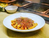 Ziti with mozzarella and tomato sauce baked to perfection in our oven.