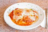 Breaded, fried & topped with tomato sauce and melted mozzarella.